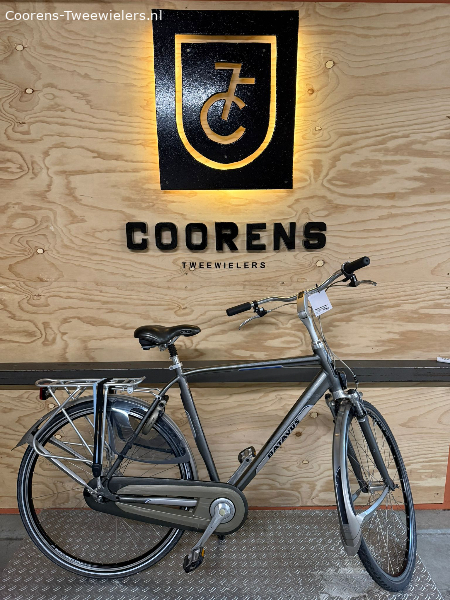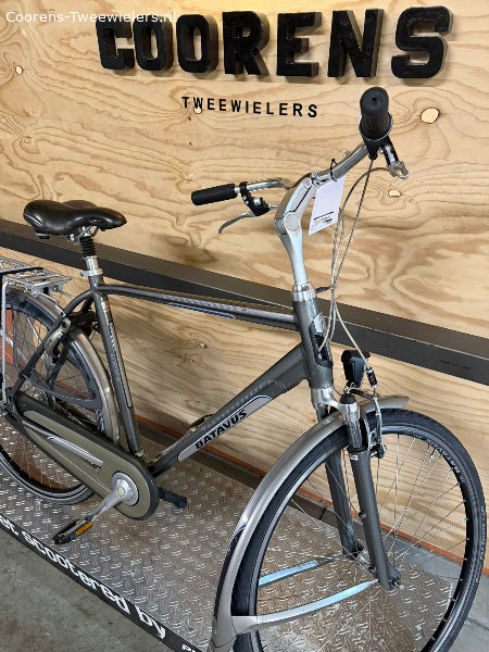 Herenfiets van Batavus met 7 versnellingen, verende voorvork en zadelpen.