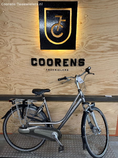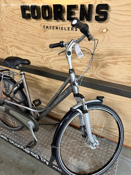 Nette Gazelle damesfiets met 7 versnellingen, handremmen, verende voorvork en zadelpen.