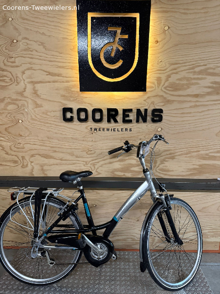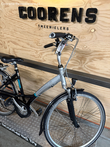Sportieve Batavus damesfiets met 24 derailleurversnellingen, verende voorvork en zadelpen.